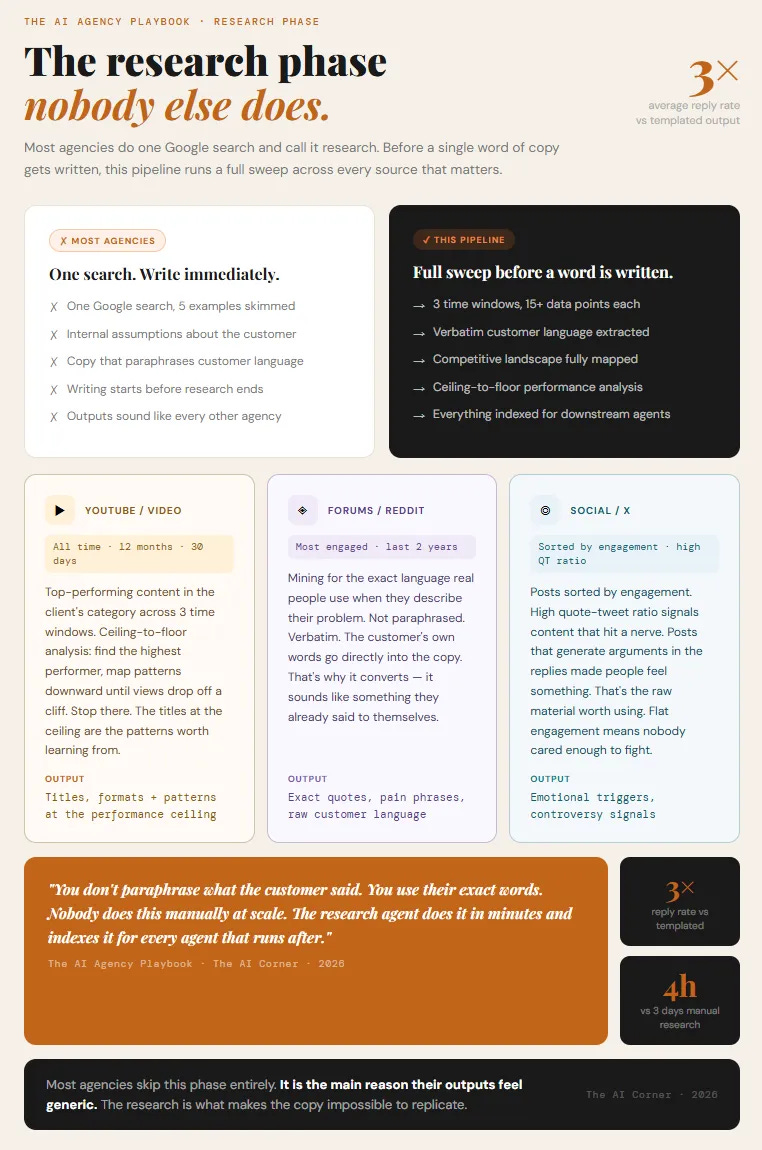 The research phase alone is what most agencies skip.