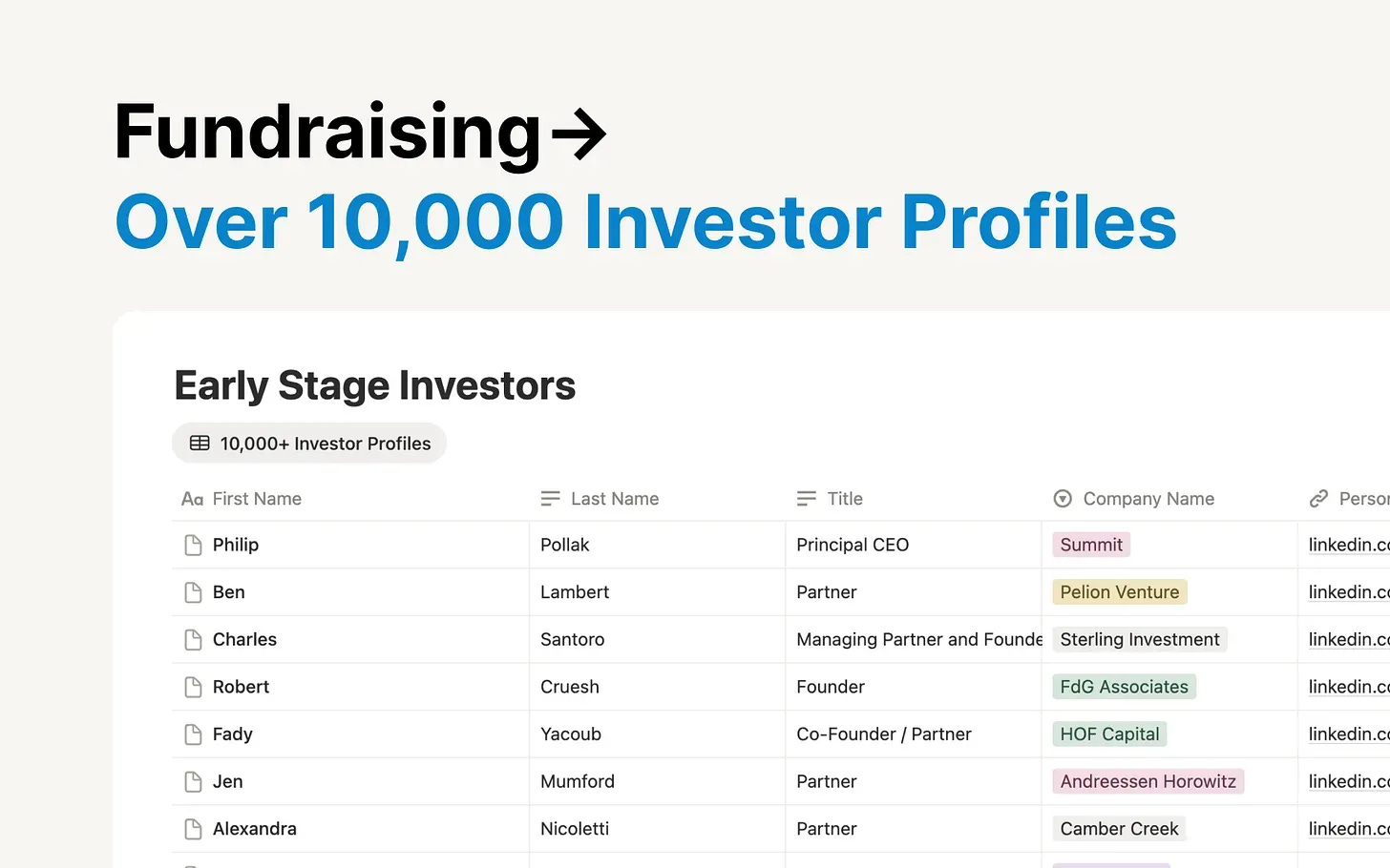 Access to 10,000+ investor profiles