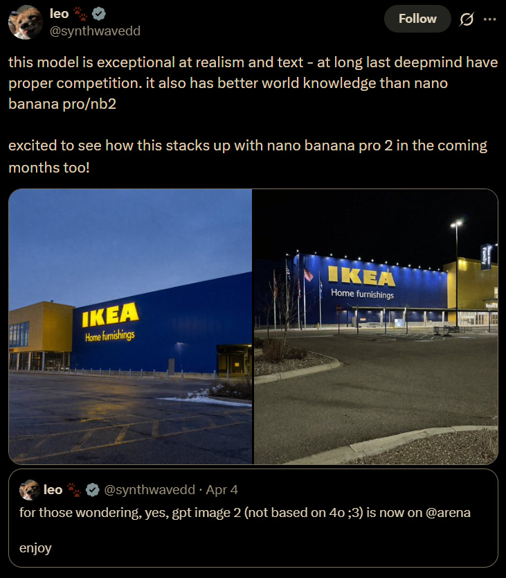“This model is exceptional at realism and text. At long last DeepMind has proper competition. It also has better world knowledge than Nano Banana Pro.”