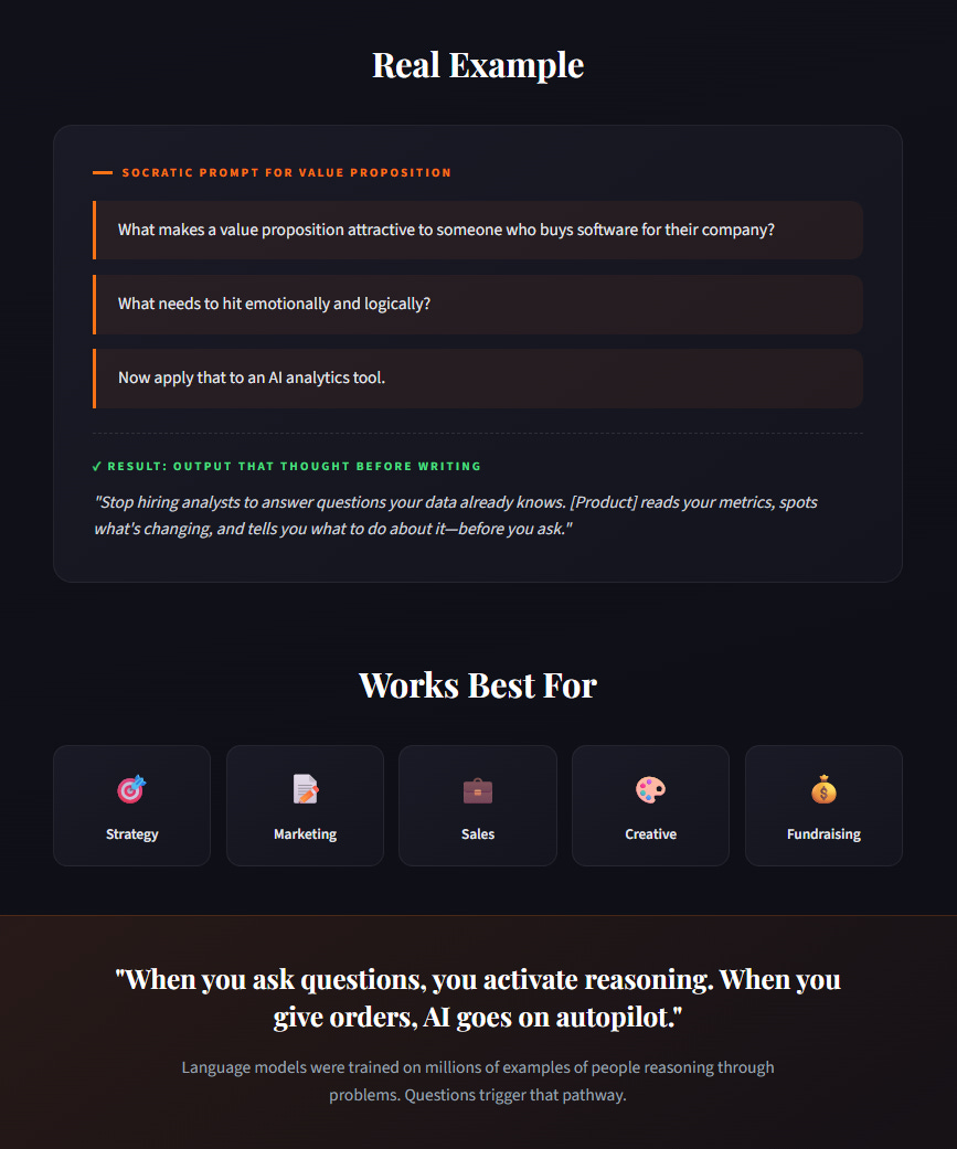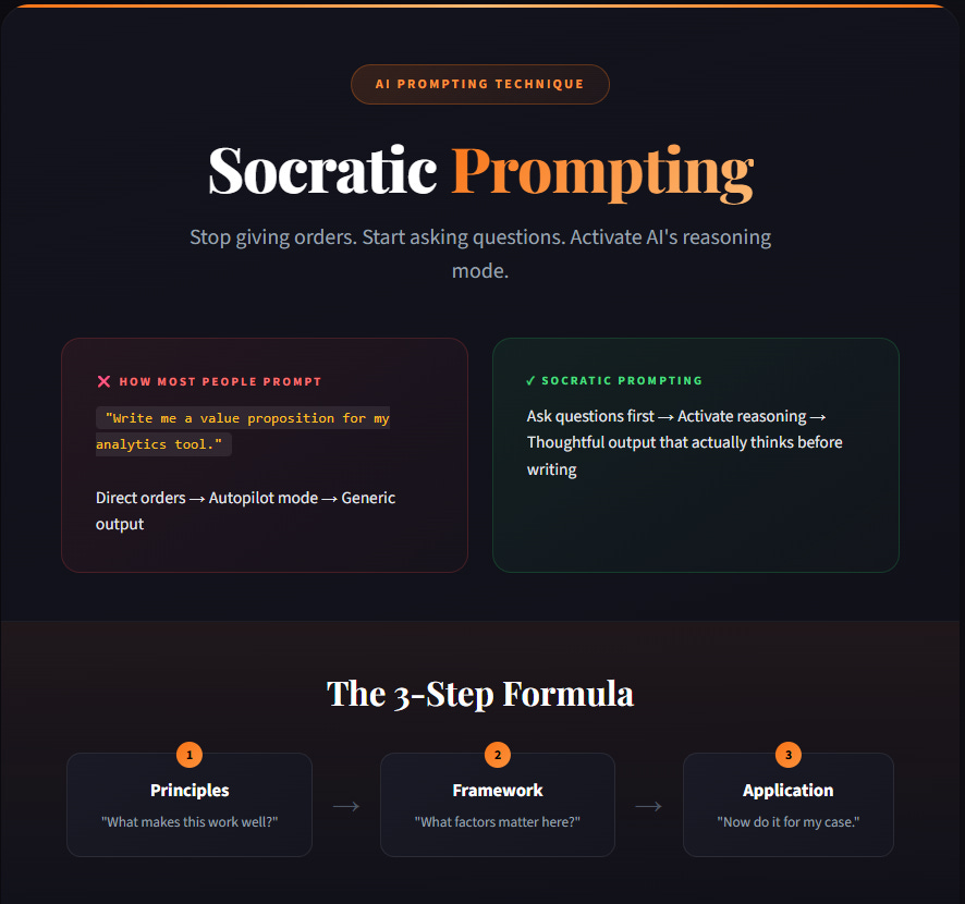 There’s a better way. Researchers call it Socratic prompting. I’ve been using it for a few days and the difference is noticeable.